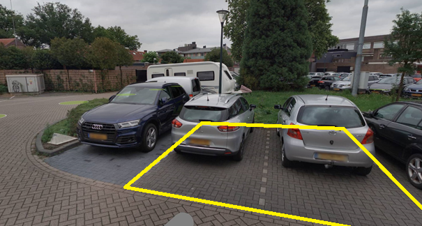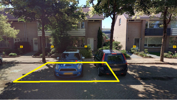 • Altijd in de openbare ruimte en tussen twee parkeervakken.